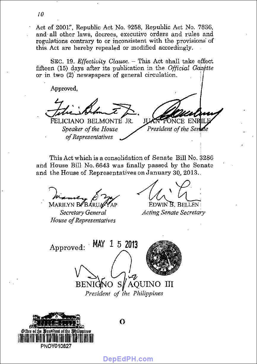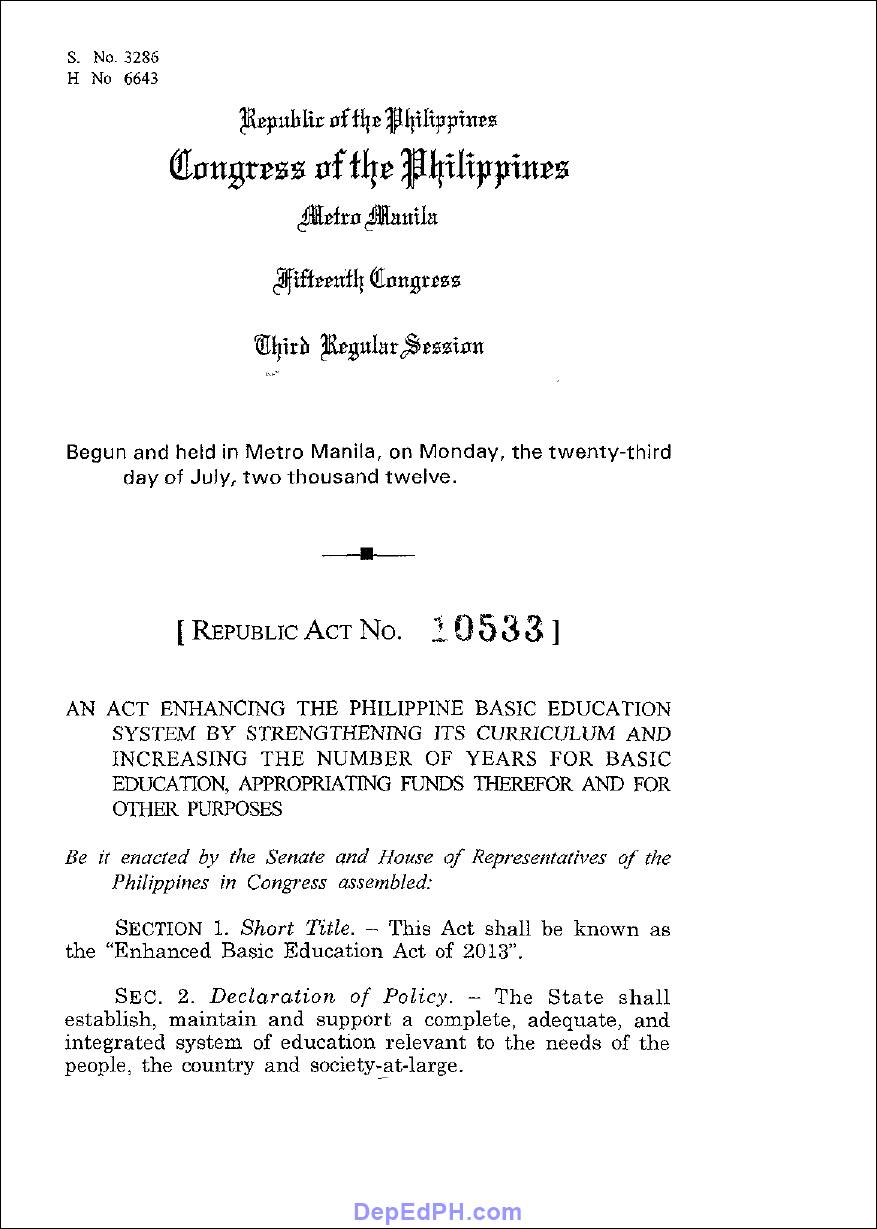 If you want to learn more about the Republic Act 10533 and its implementing rules and regulations, you can download the full PDF file from the Official Gazette of the Philippines. We have provided this document file for you to refer by downloading this link – Republic Act No. 10533 full PDF File Document Download